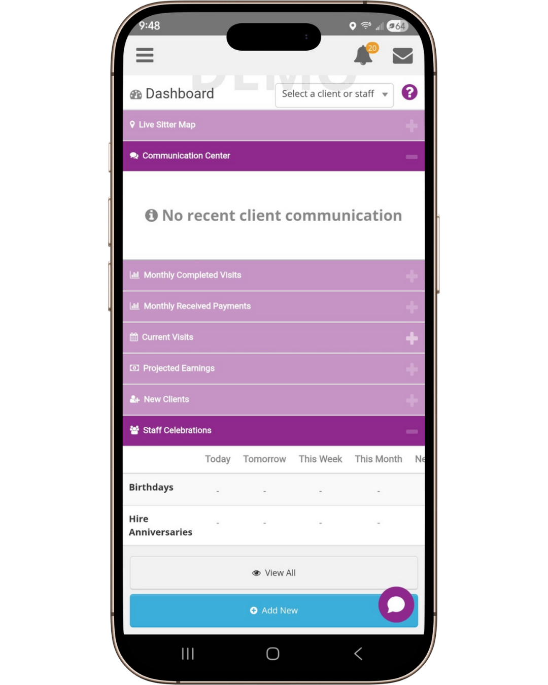 Access detailed reports on revenue, staff productivity, visit history, and more. Make smart, data-backed decisions with dashboards built for busy pet care professionals.