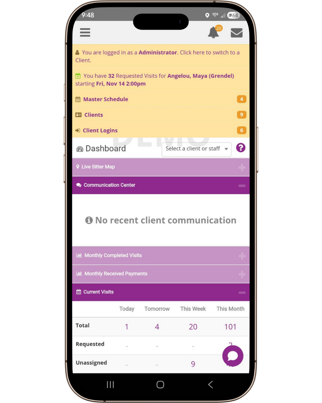 Quickly assign and manage visits using drag-and-drop scheduling, GPS check-ins, and photo-enabled visit journals. Everything updates in real time to keep your team and clients on the same page.